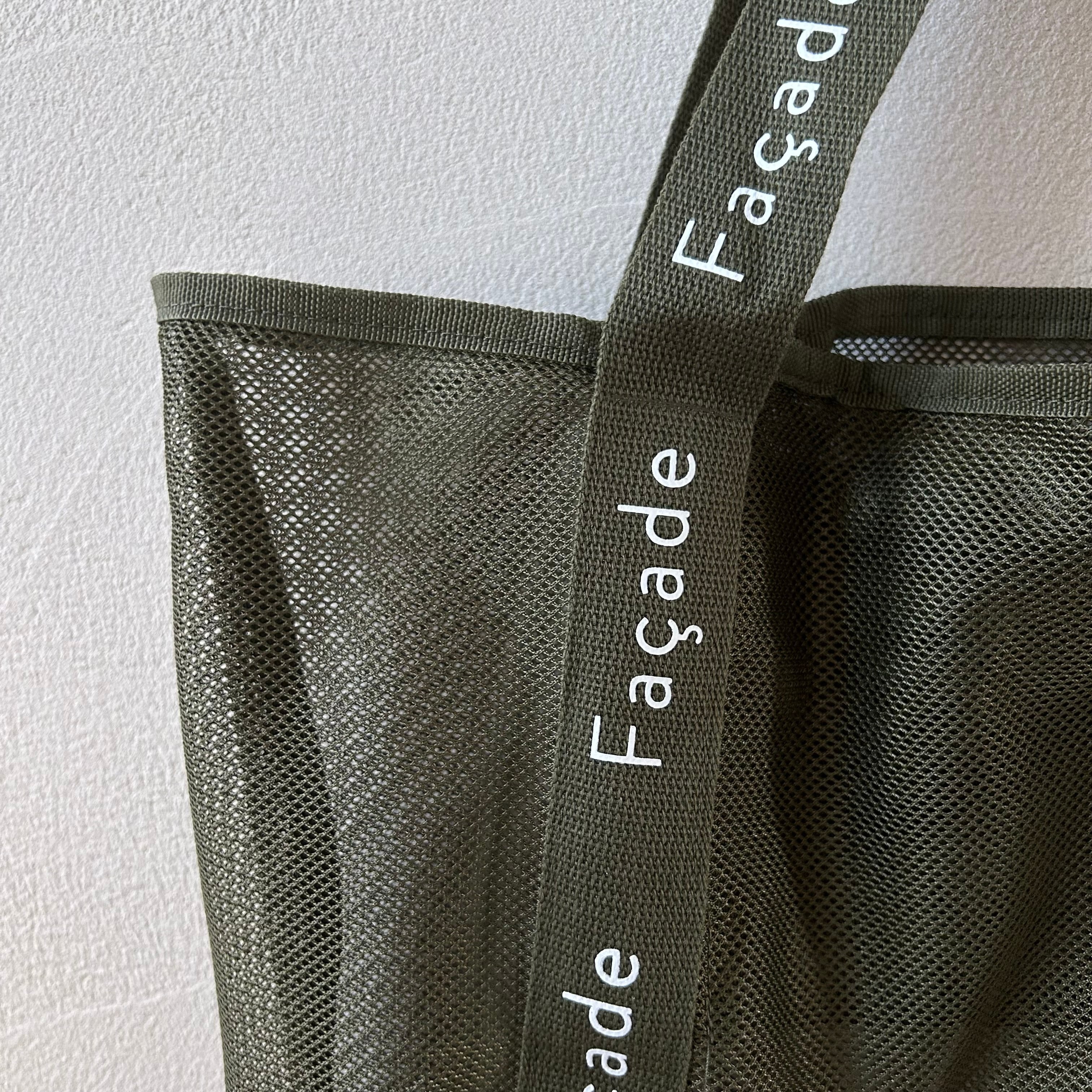 façadeを代表するメッシュ素材のシグネーチャートートバッグ。今シーズンは新色のモスグリーン!落ち着いたカラーが素敵ですよ。ホワイトのアクセントがおしゃれなデザインです。毎シーズン人気の軽くて大判のトートバッグは日常使いに最適です!