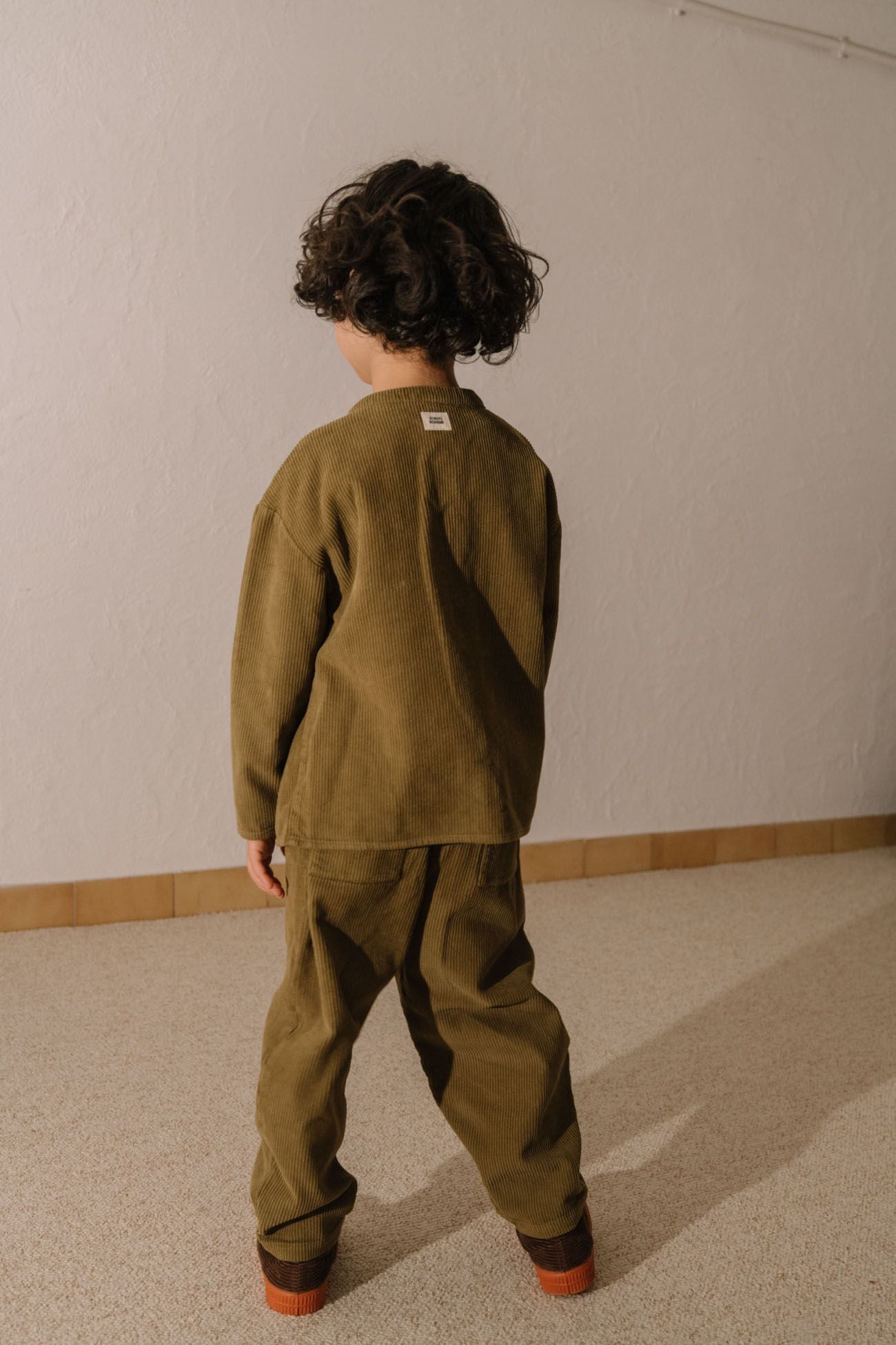 シーズンカラーの『GREEN NATURIA』の深みのあるカラーが素敵です。短め丈と丸みのあるシルエットが動きやすく、毎シーズン大人気のボトムスです。柔らかなオーガニックコットン100%のコーデュロイ素材と伸縮のあるウエストゴムにより、かわいいシルエットを作り出しています。