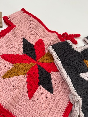 カリンカといえば毎シーズン人気のベスト。色の組み合わせがかわいい2色をセレクトしました!心を込めて編んでくださったニッターさんのサイン付きのタグも素敵思い出の品物に。お洒落なコーデのアクセントぜひオススメのアイテムです。