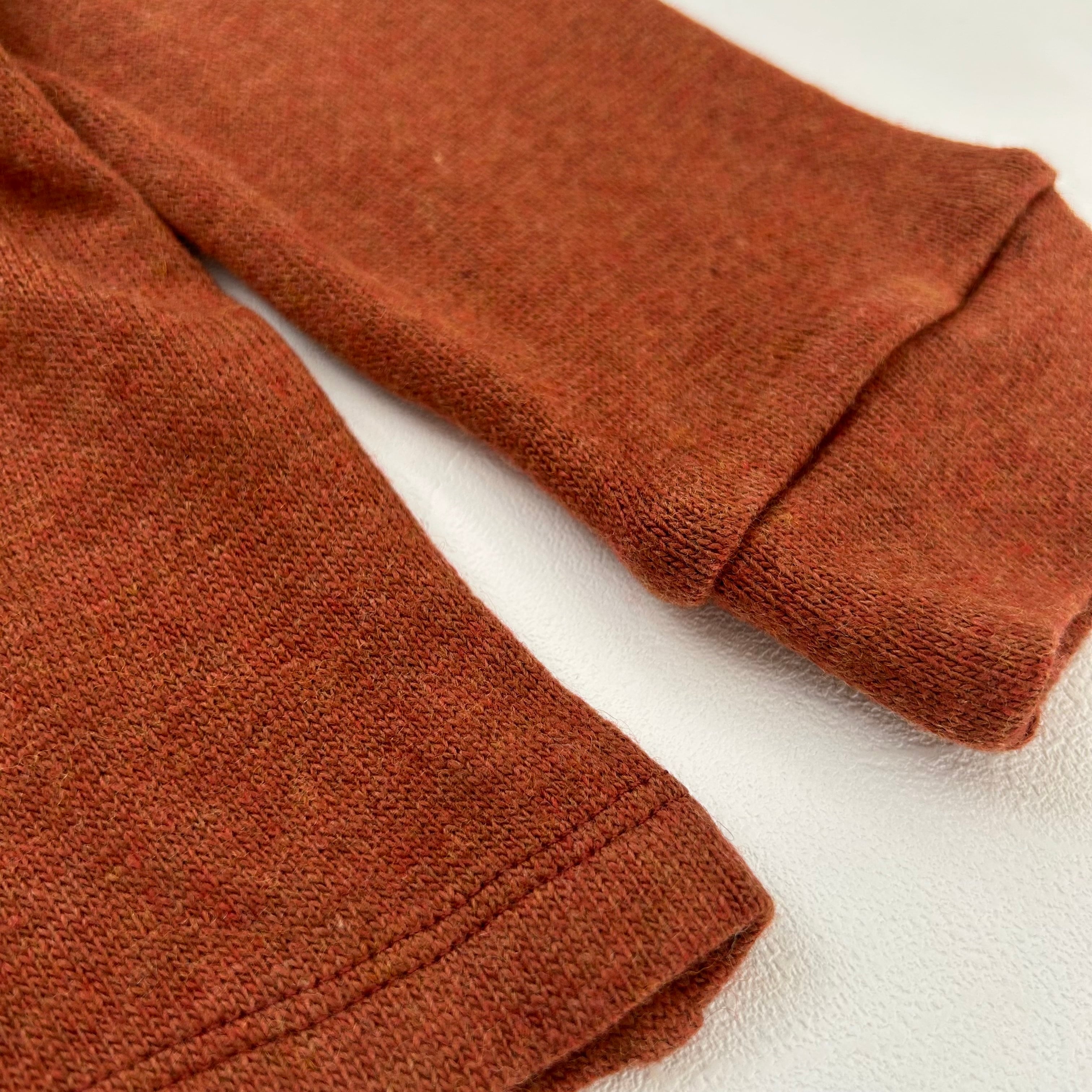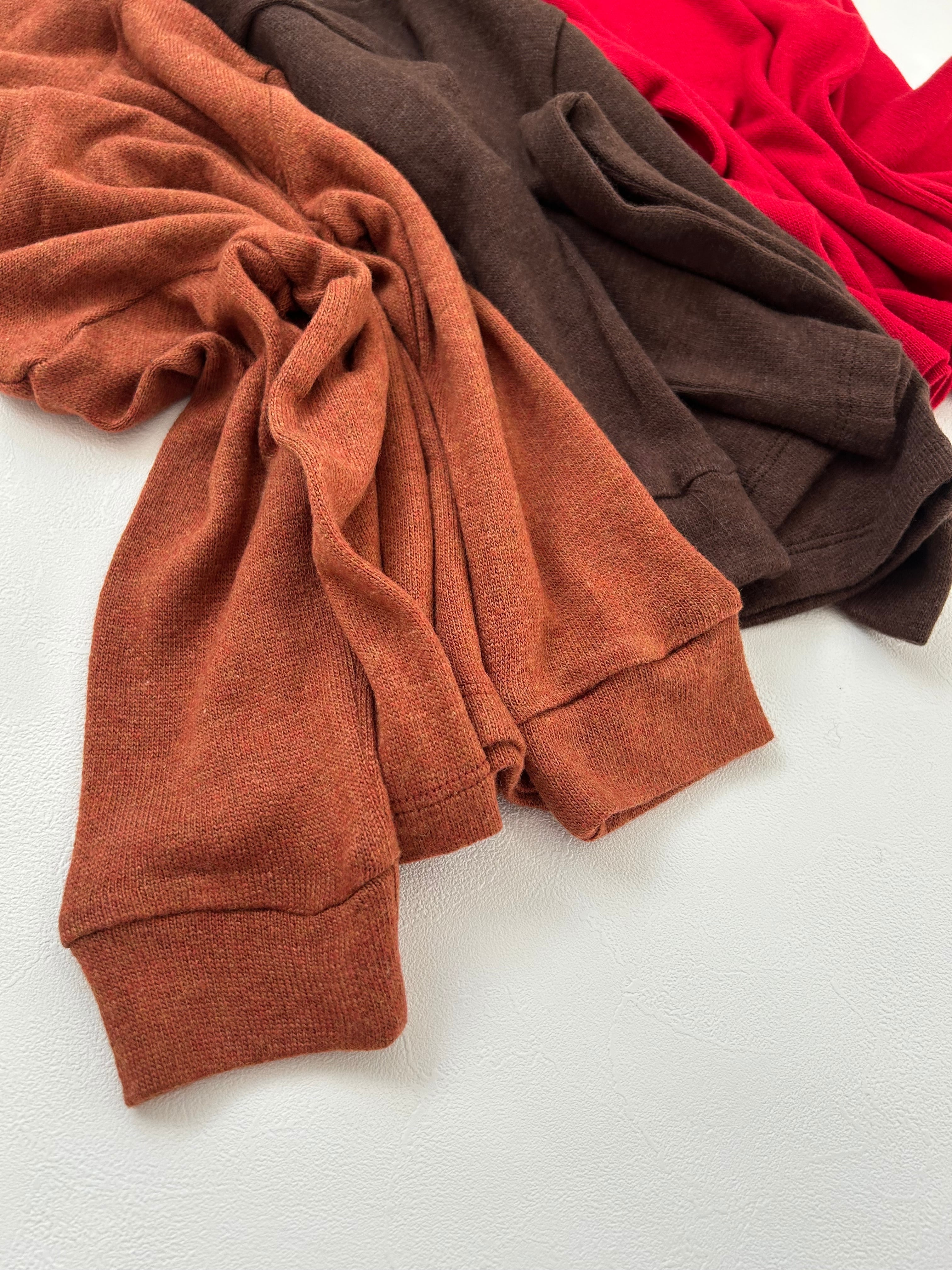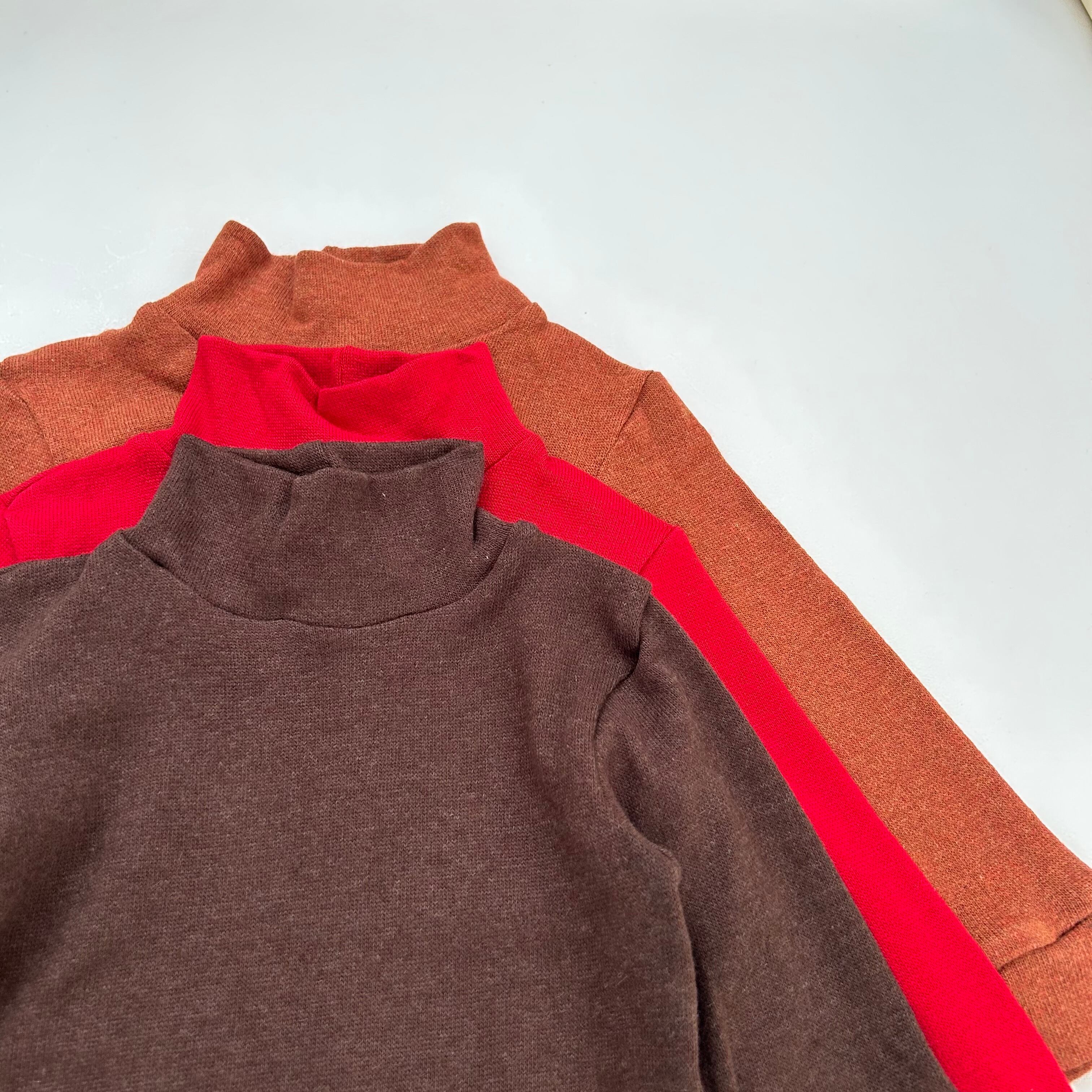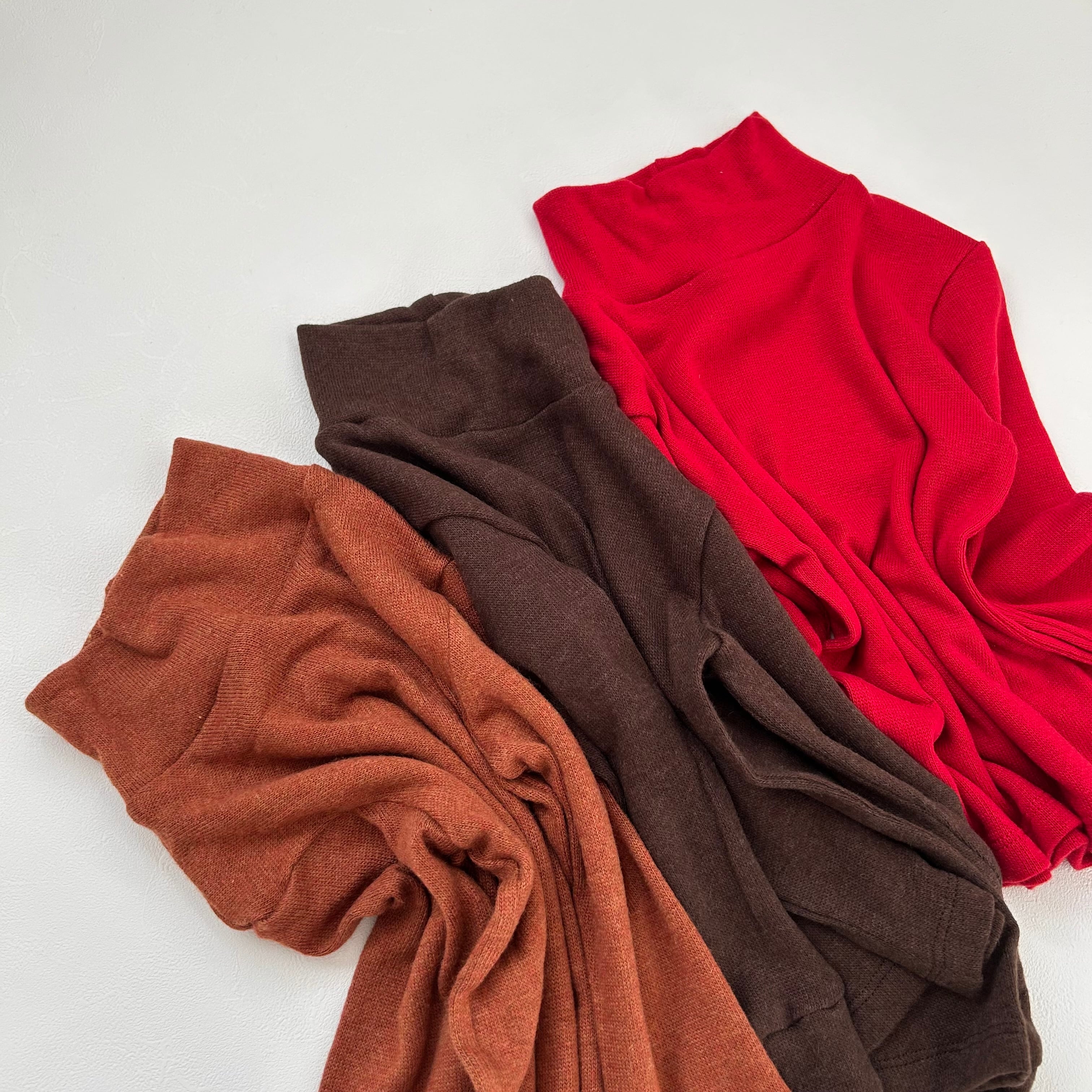 薄手ですが、カシミヤ混でとてもあたたかいです。短めのタートルネックなので、小さなお子様にも着やすいです。身頃や袖にはゆとりがあり、手首は、キュッと締まっているのでインナーも重ねやすく手首から暖気が逃げない仕様になっています。