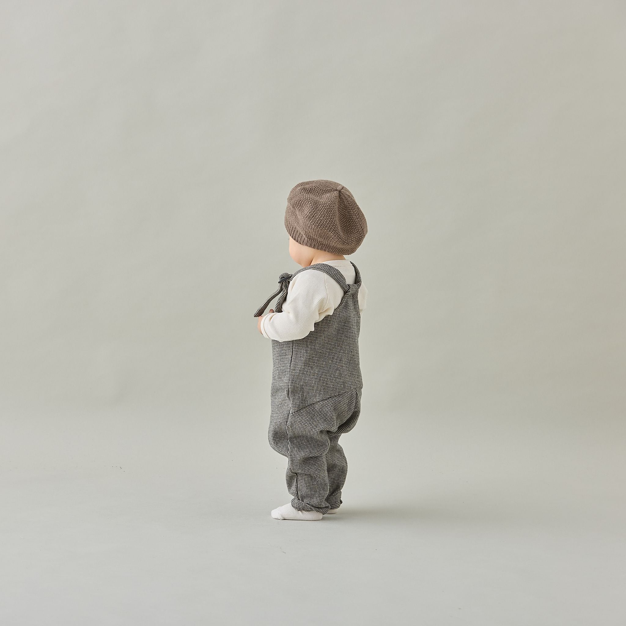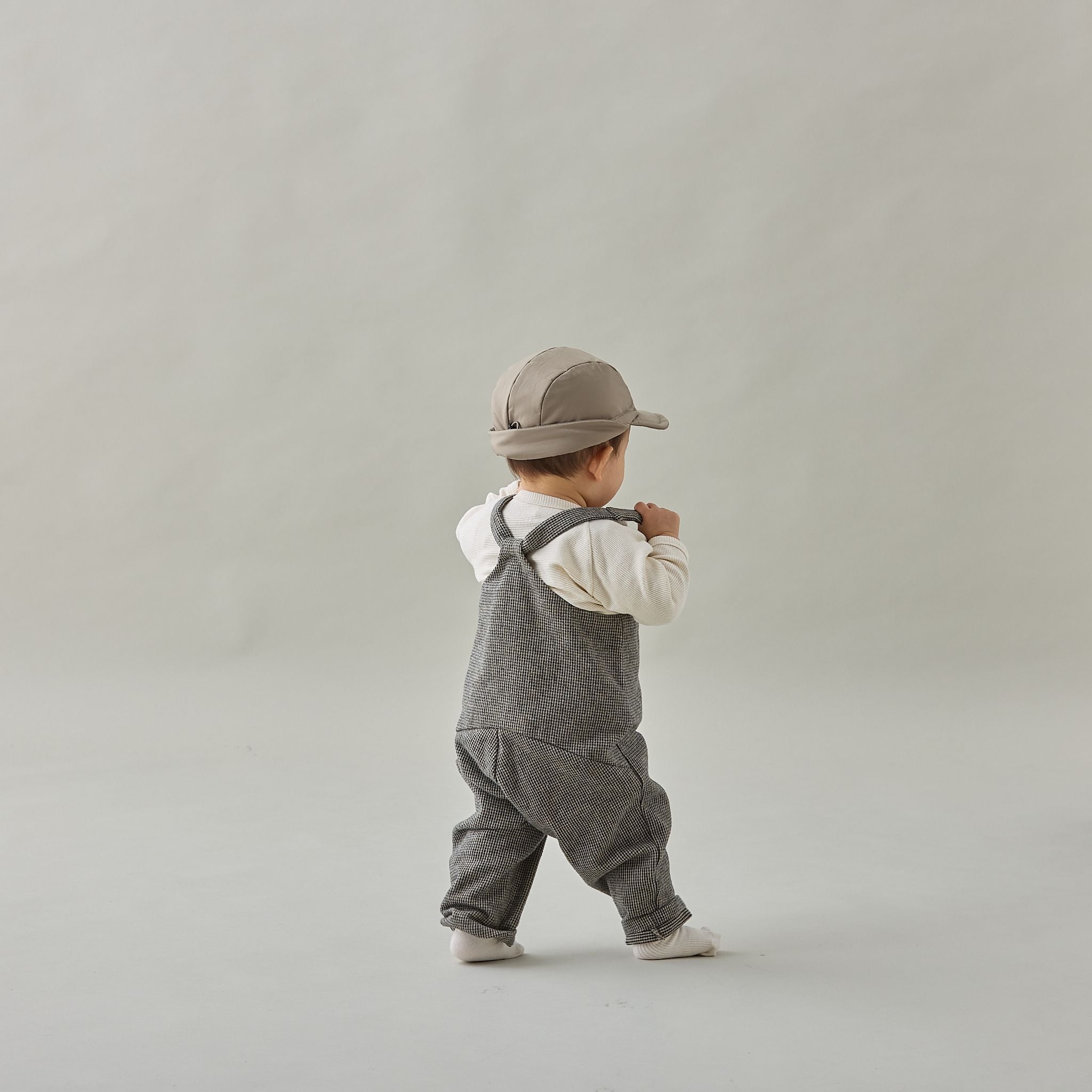 着脱がしやすく動きやすいコットンツイードのサロペット