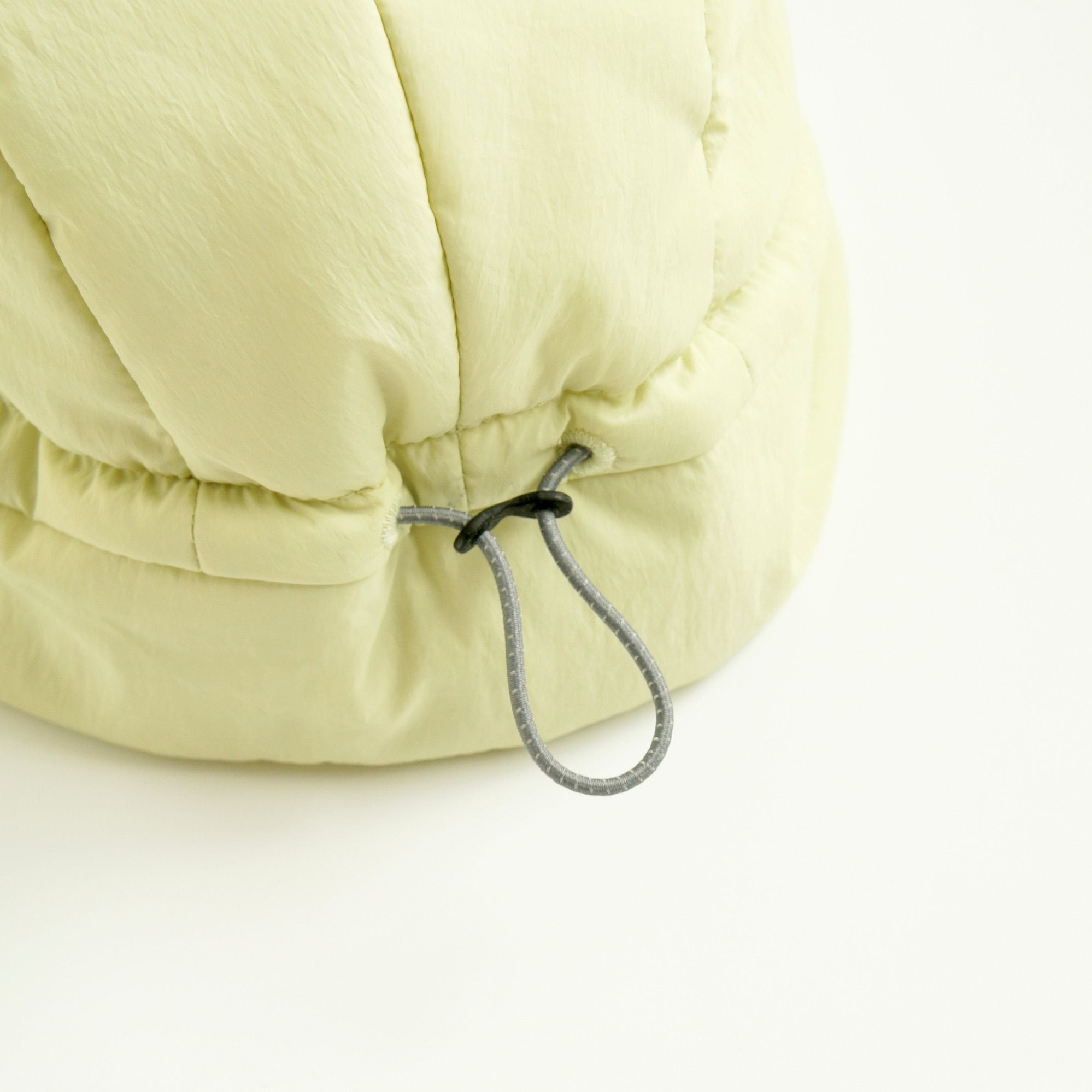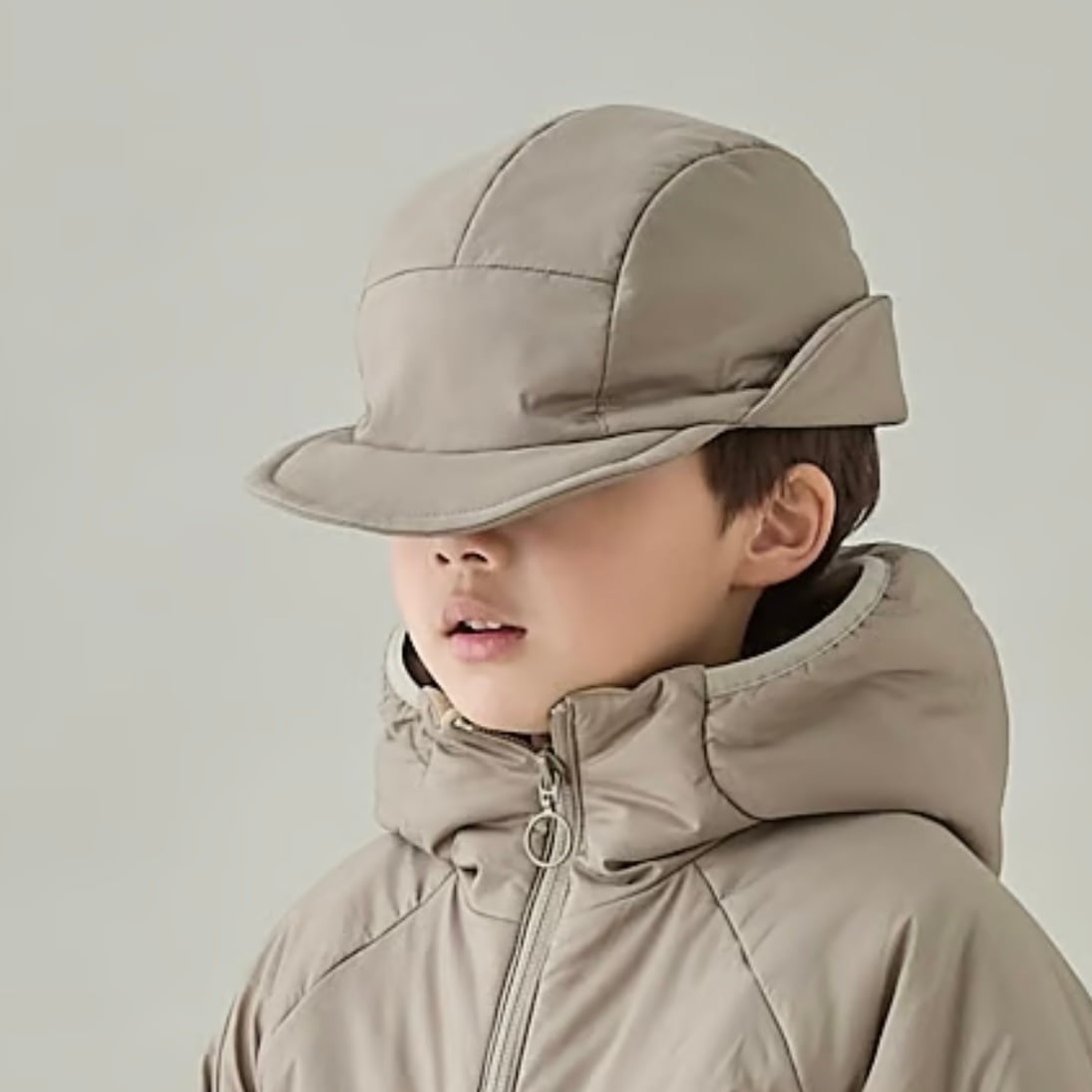 撥水性・防風性のある超軽量なリサイクルナイロン素材を使用し、保温性のある中綿入り、折り返せる耳当て付きで、とても軽く暖かいキャップです。
