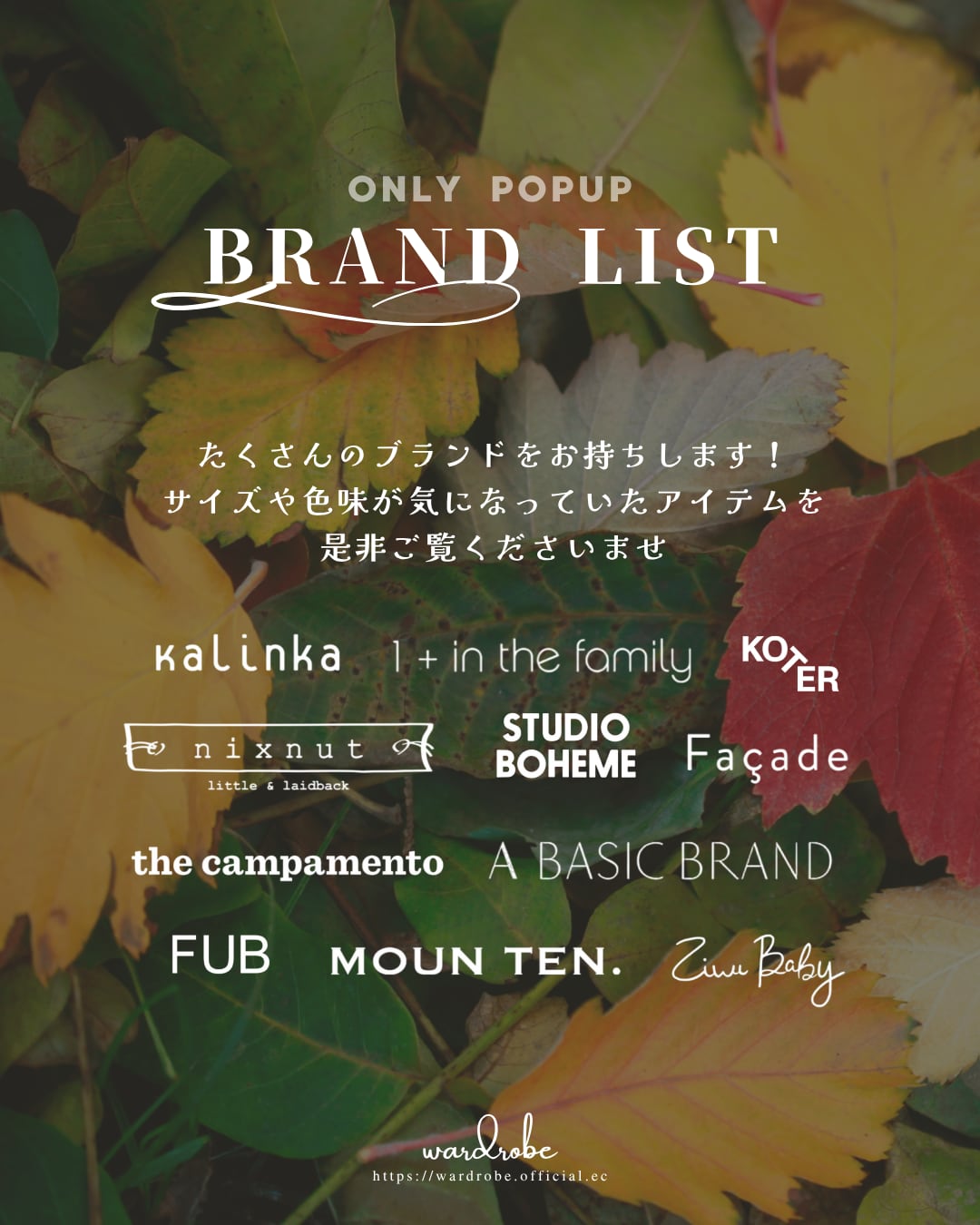 11月9日(日)のポップアップイベント開催に伴いまして、一部即納商品を非公開にさせていただいております。
