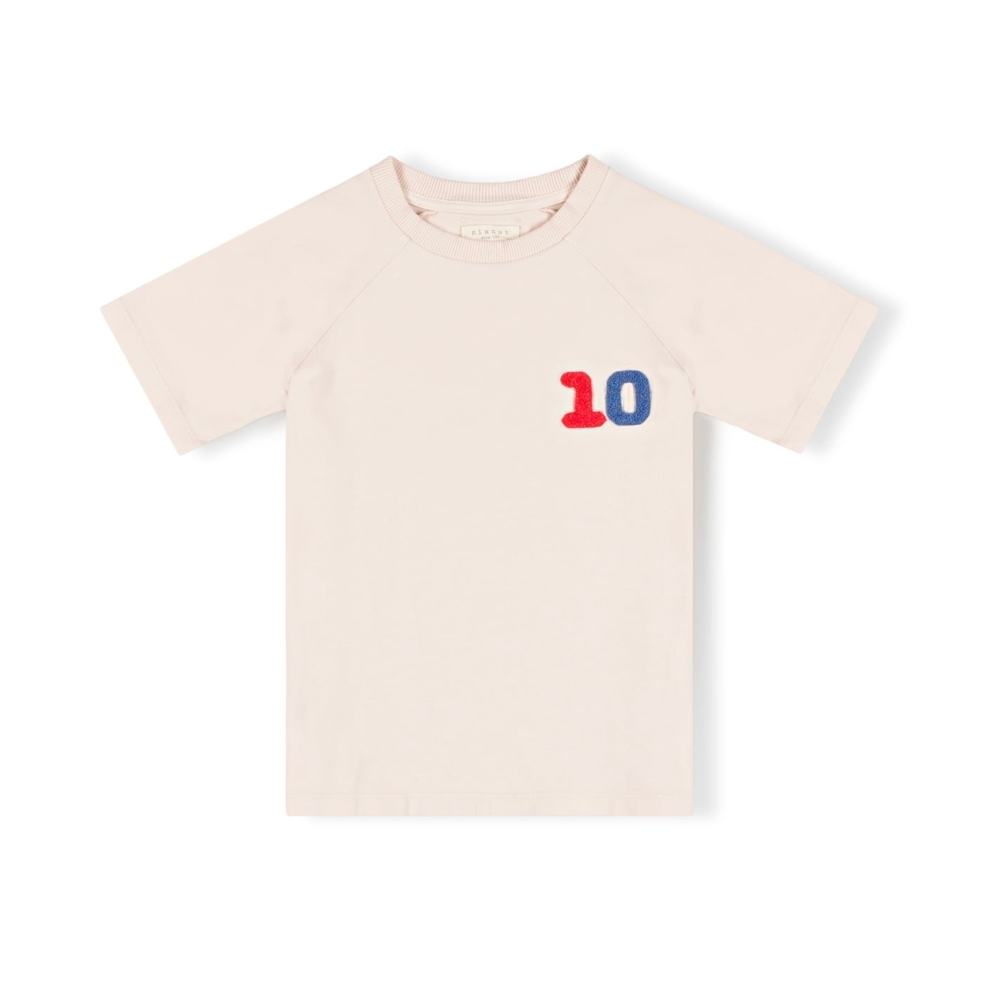 nixnut創業10年を記念した「10」がモチーフ。胸元の「10」ワッペンは、パイル生地のふわふわで、レッドとブルーの組み合わせがスポーティですよ。素材は肌触りが最高なオーガニックコットン100%、優しく温かみのあるスノーホワイト色の生地とさり気ないブランドタグが首の後ろのアクセントに。タイムレスなシルエットと丈夫さなので2シーズン着用していただきたいアイテムです。上質でこだわりの詰まったアイテムは、ギフトにもぴったりです。