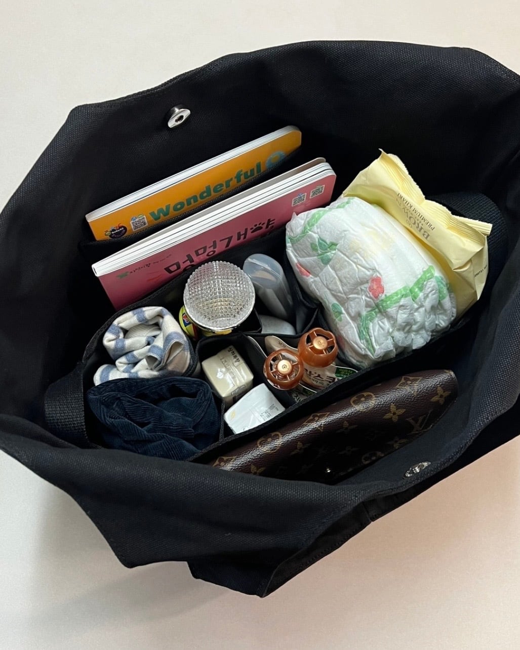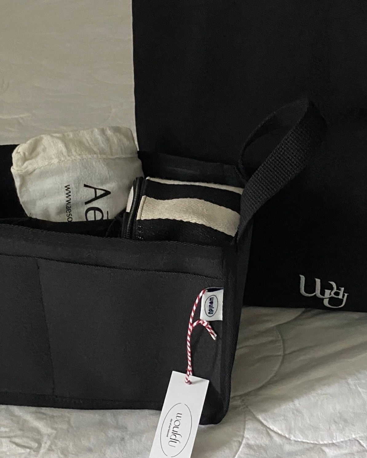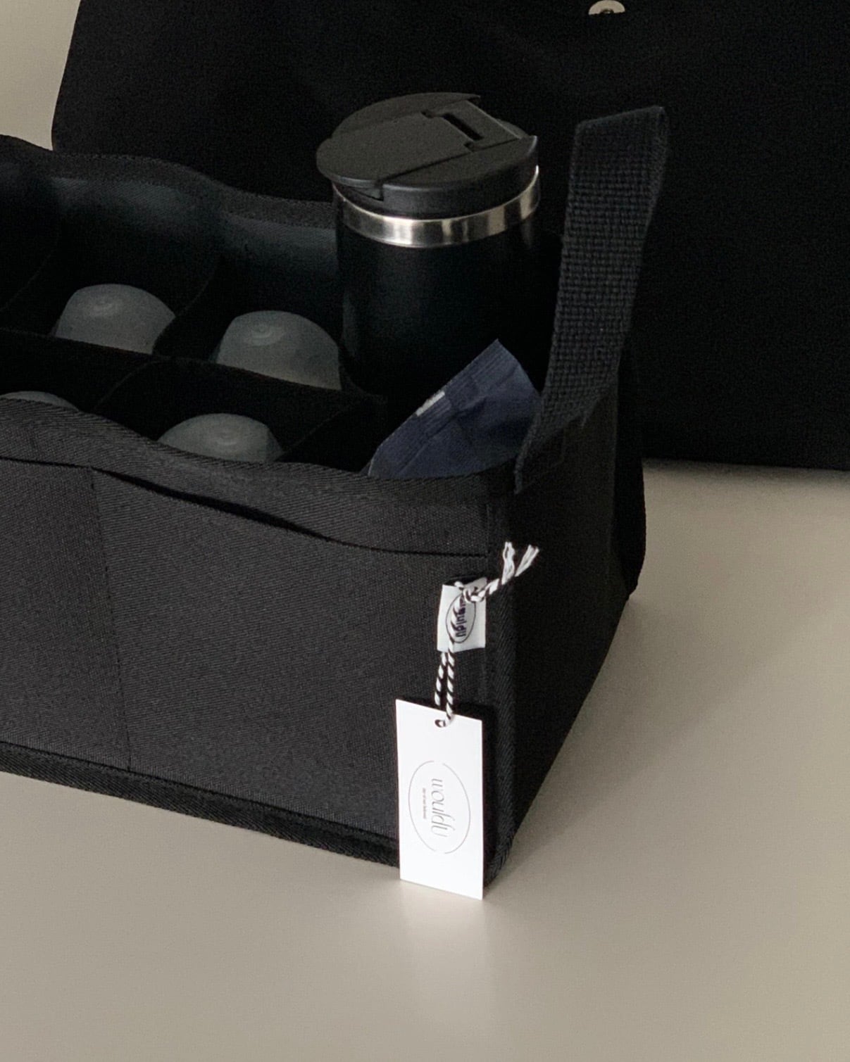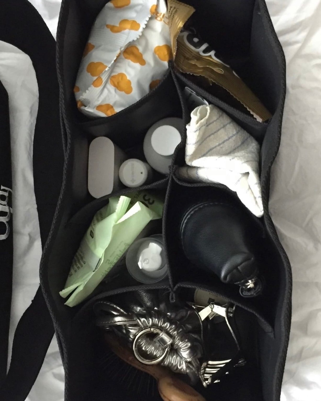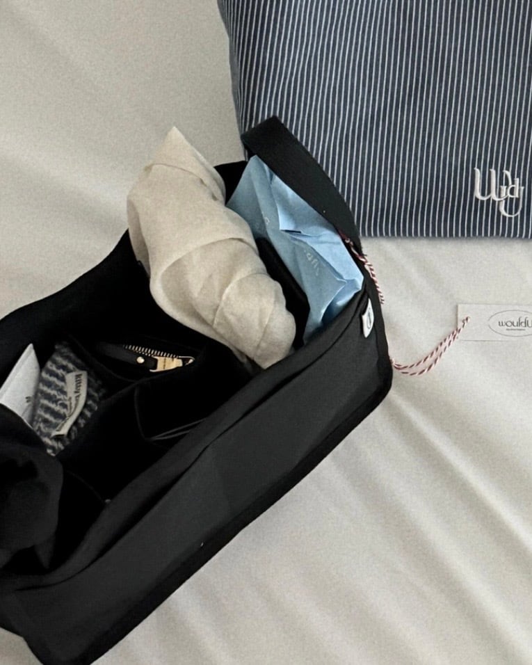 WouldUの人気アイテムテディバッグを、より快適に使うためのアイテムです。こちらのインナーバッグを加えることで小物が分類しやすくなります。生活防水機能付きのしっかりしたポリエステル素材で作られており、大きなバッグの中でもズレにくく、整理整頓しやすくなるので、実用的で快適にお使いいただけるオススメアイテムです。