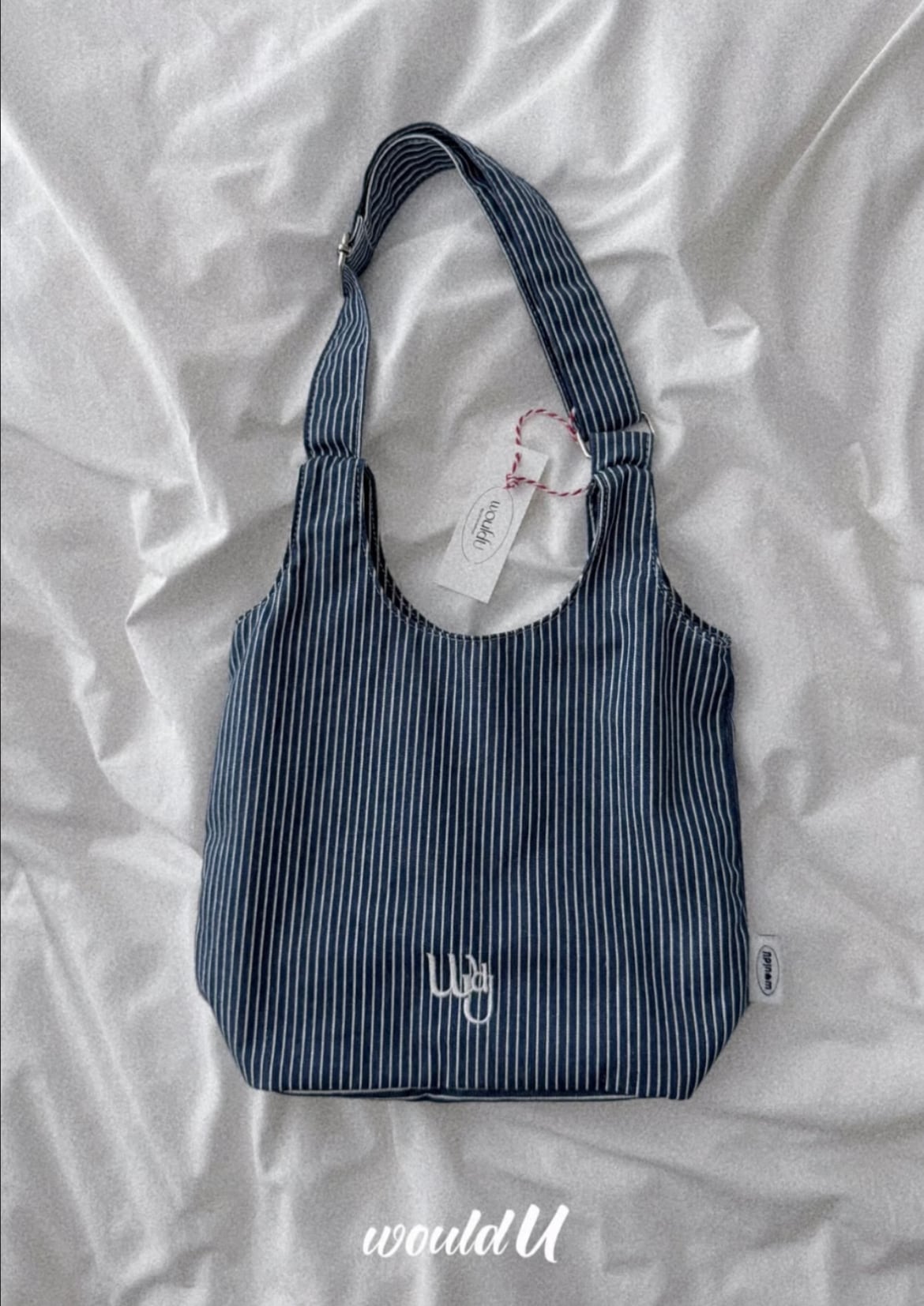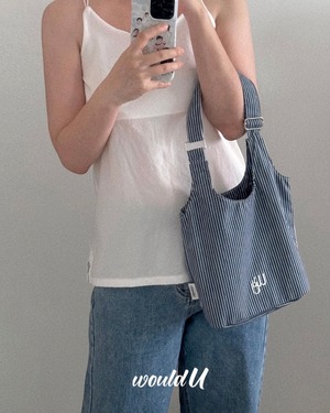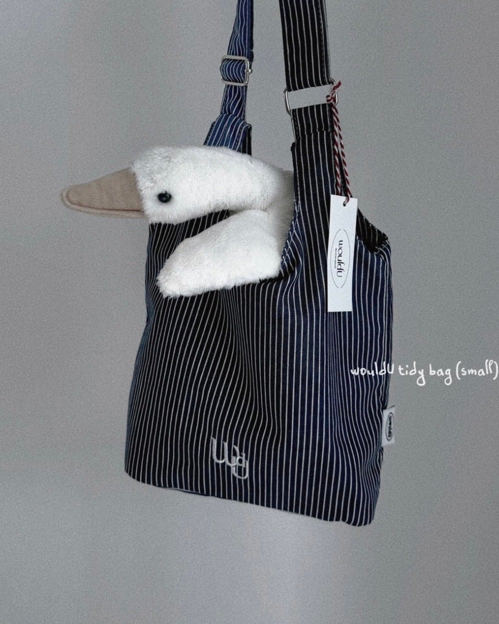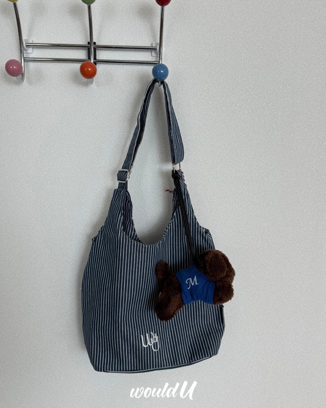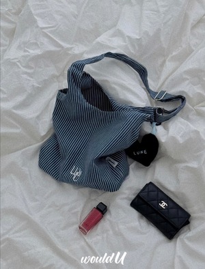 ストライプ生地のコンパクトテディバッグ