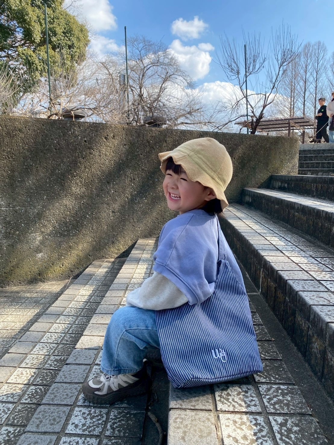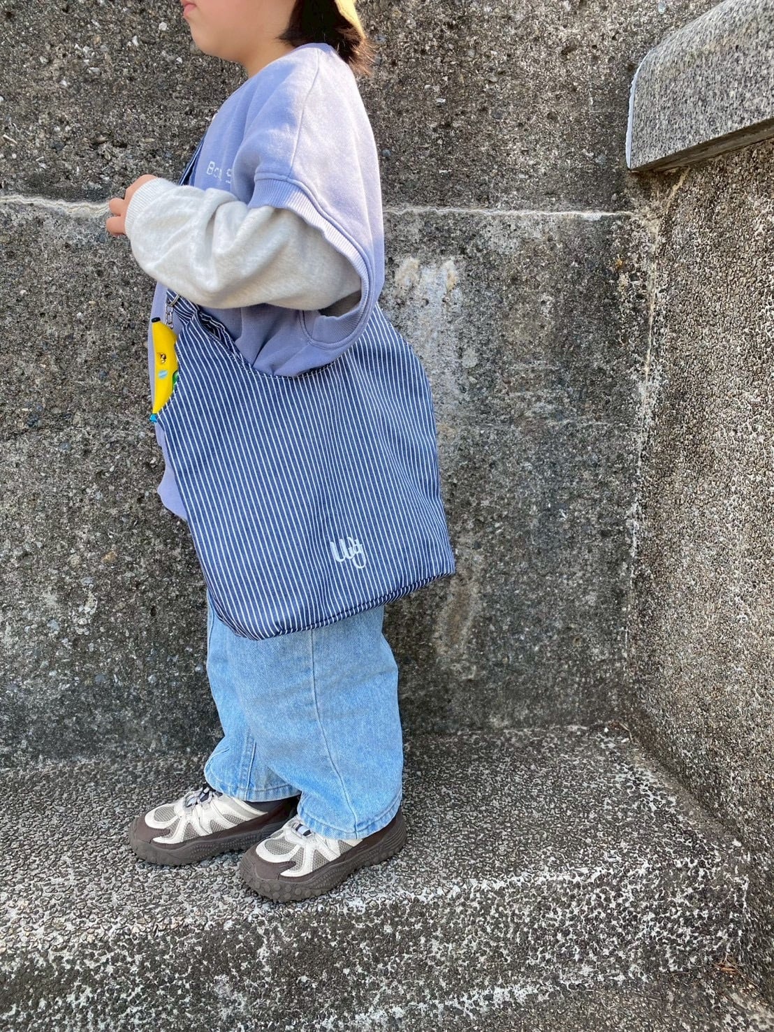 ブラックのしっかりとしたコットン100%キャンバス地のテディバッグとは異なり、こちらはより涼しげで軽やかな印象のストライプ生地を使用した新しいテディバッグです。体型や用途に合わせて、使い分けできるスモールサイズ。公園などのちょっとしたお出かけ時に、お子さまの哺乳瓶・おやつ・おしりふき・マルチケースなどを入れられるよう設計しています。ストラップの長さ調節が可能で、肩に掛けたり手持ちしたりできます。