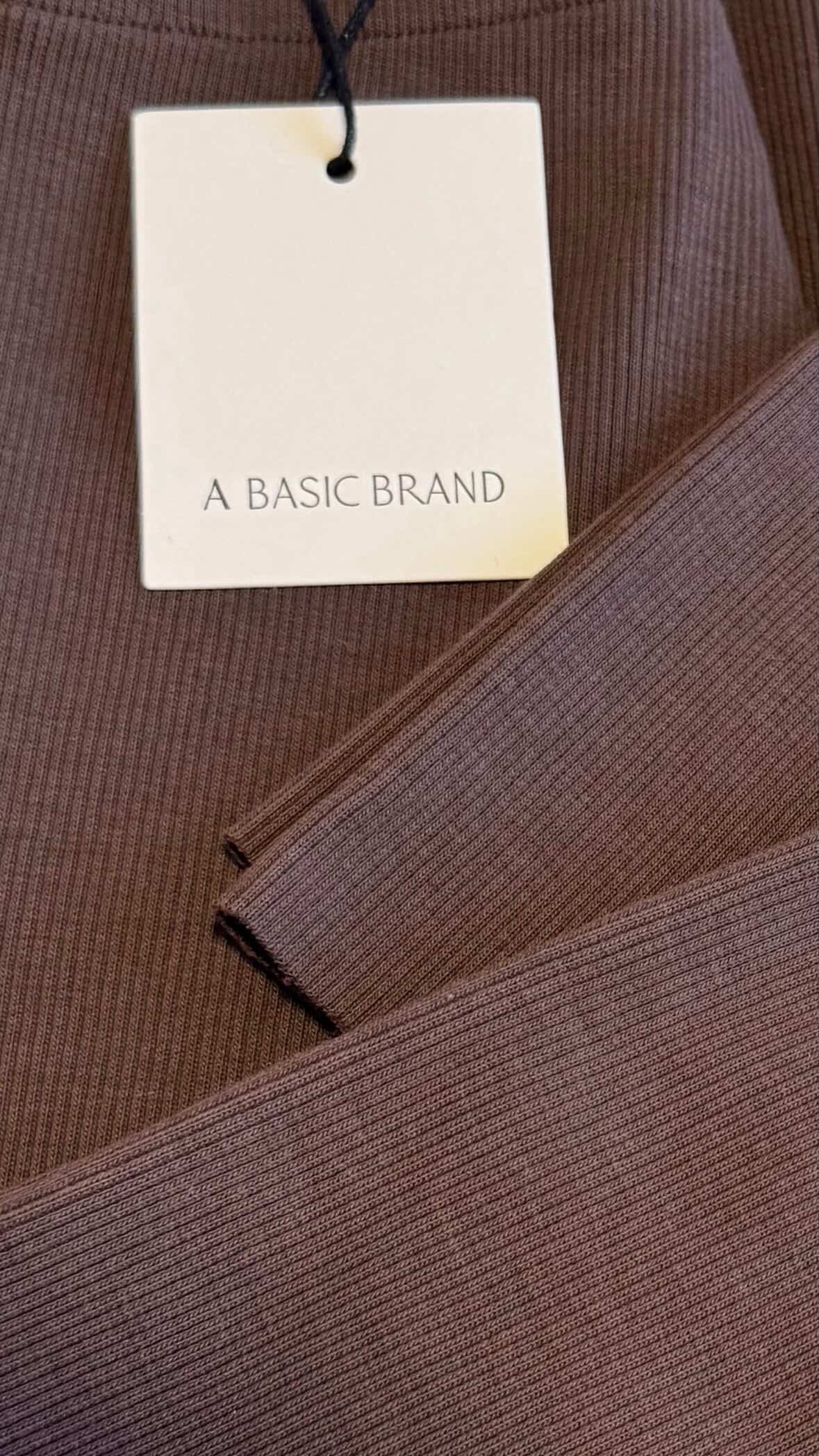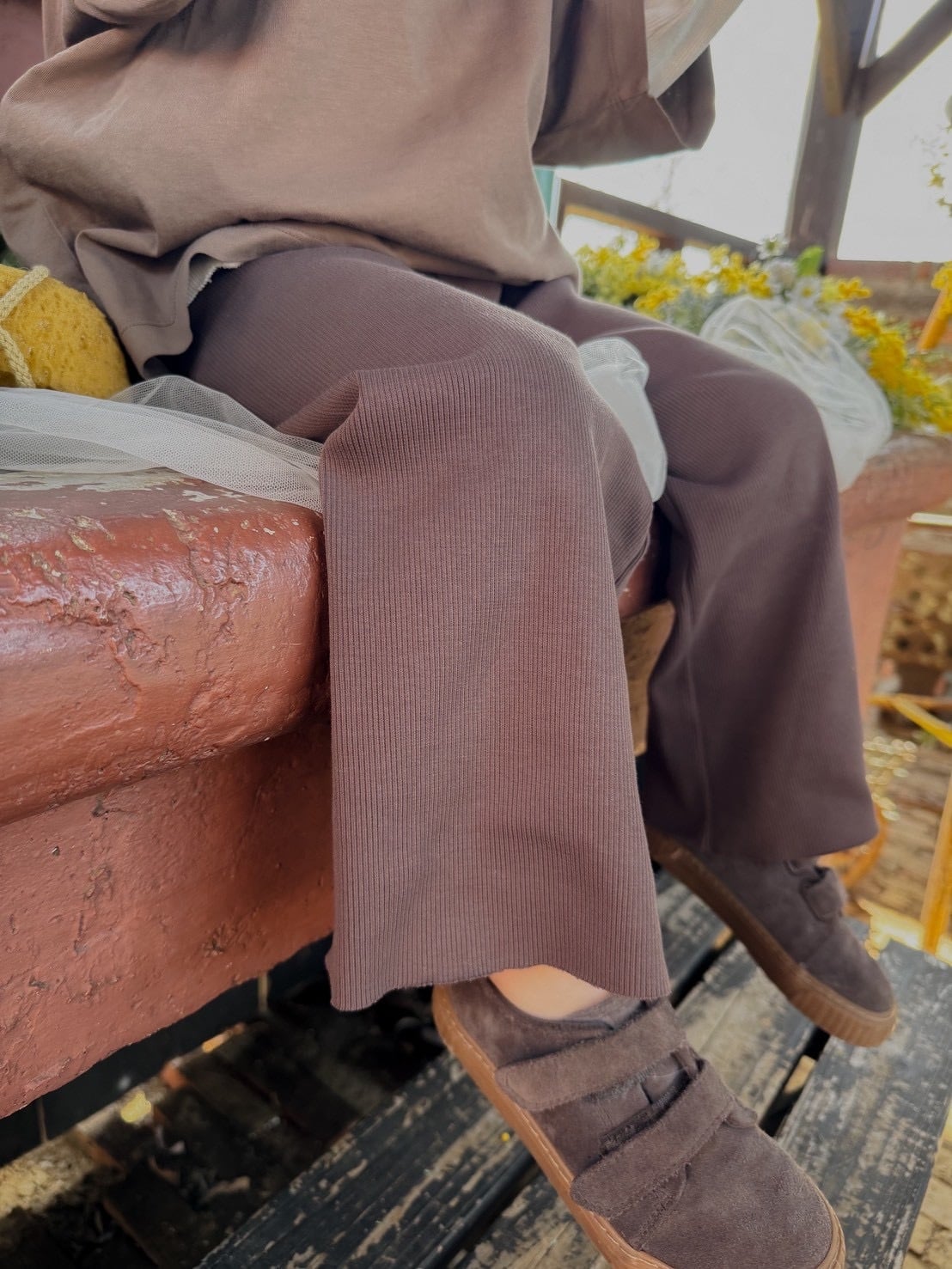 新色のブラウンは、落ち着いたキレイなカラーです。ほんのりとフレアのシルエットと、裾が切りっぱなしのシームレスですっきりとしたデザインが魅力です。ゆとりのある着用感となりますので、ジャストサイズまたは小さめのお選びがおすすめです。細かなリブが上品なので、素敵に着こなしていただけますよ。
