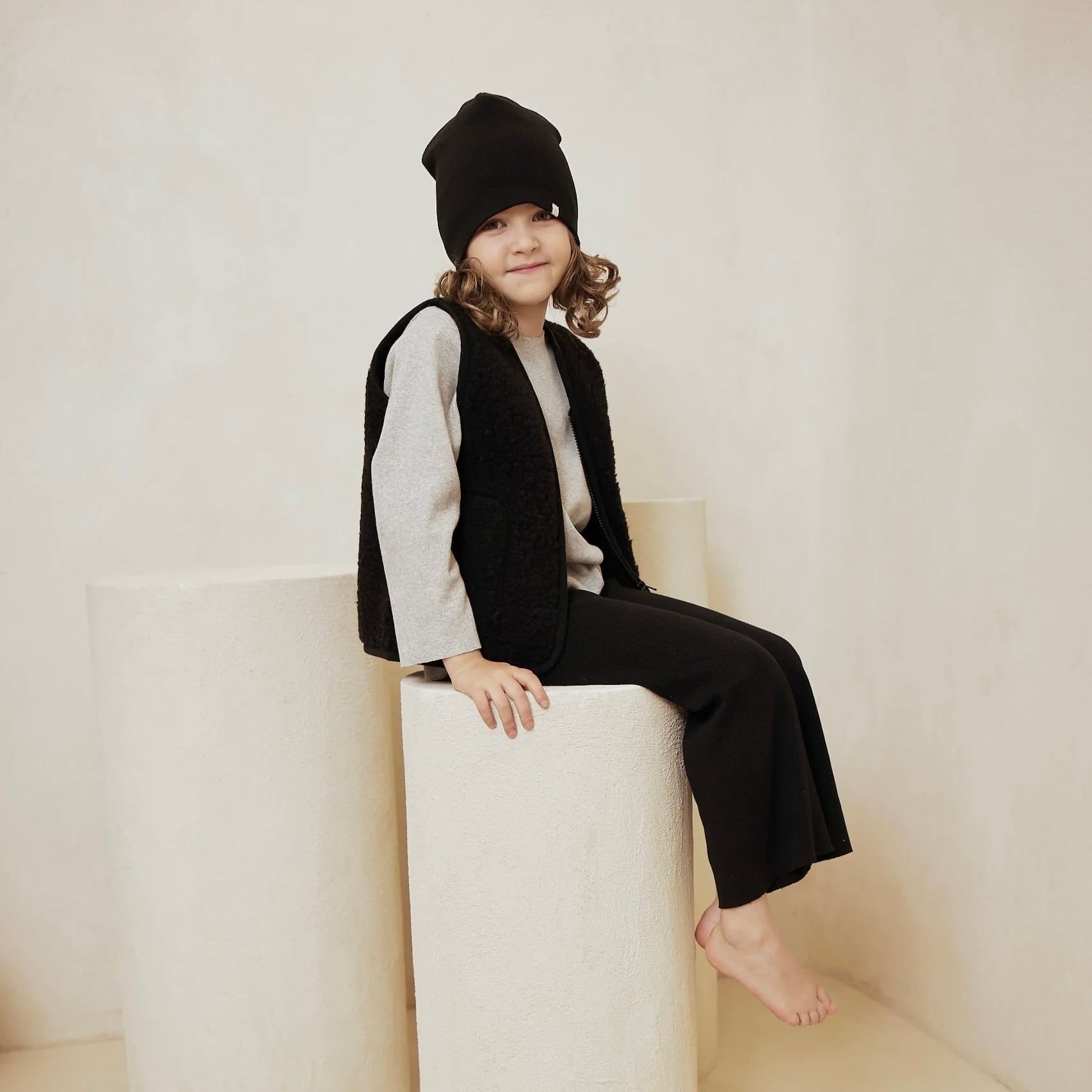 ほんのりとフレアのシルエットと、裾が切りっぱなしのシームレスですっきりとしたデザインが魅力です。ゆとりのある着用感となりますので、ジャストサイズまたは小さめのお選びがおすすめです。細かなリブが上品なので、素敵に着こなしていただけますよ。定番のブラックは使いやすさ間違いなしです。
