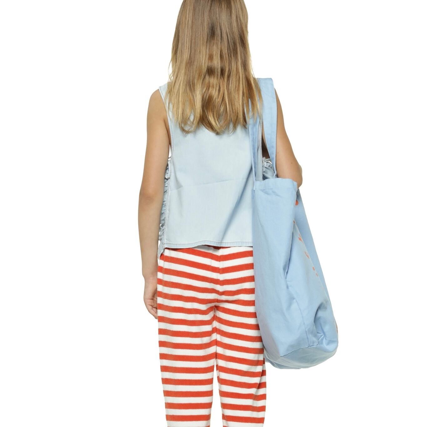 ブルーに赤のロゴプリントがかわいいデザインです。とっても大きなバッグなので、オムツや着替えもたっぷり余裕で入ります。コットンキャンバス素材で強度もしっかりとしているので、ペアレンツバッグとしても、ちょっとした旅行用としてもお使いいただけます。海外ブランドならではの発色が美しく、澄んだ空のような青色と朱色のようなオレンジがかったレッドの組合せが絶妙です。